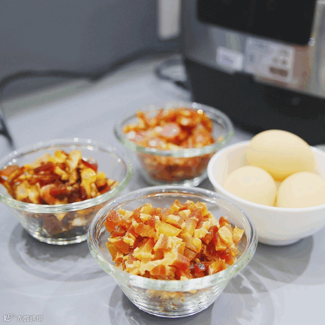 把米放进去加水即可,无需提前浸泡,中途响起加菜提示就可以揭盖放菜,不怕错过最佳时间~