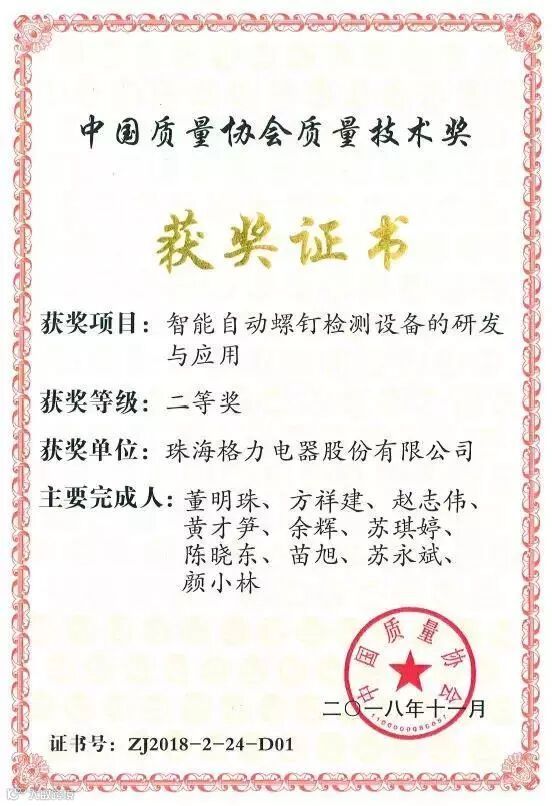 格力分别在2014年和2017年获中国质量协会质量技术奖一等奖;今年11月,格力电器还凭借“让世界爱上中国造”格力完美质量管理模式斩获了中国质量领域的最高奖——中国质量奖,问鼎质量管理之巅。