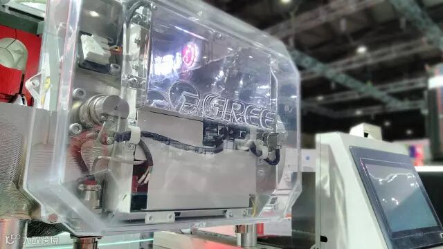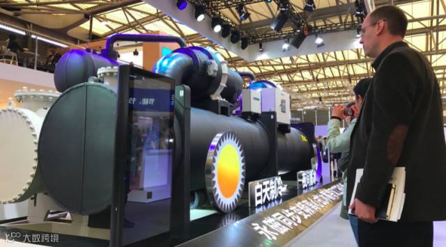 格力电器的展区是本次所有参展企业当中最大的,展出了高效永磁同步变频离心式冰蓄冷双工况机组、磁悬浮变频离心机、三缸双级变容压缩机等多项“国际领先”产品。