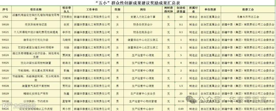 近日,新疆维吾尔自治区总工会公布了《2023年自治区职工创新活动拟通报奖励创新成果奖项》,新疆华泰重化工有限责任公司(以下简称“华泰公司”)658项“五小”创新成果获得自治区优秀创新成果。其中劳模引领性优秀创新成果33项,每个项目各奖励1000元;“五小”群众性优秀创新成果625项,每个项目各奖励300元,共计190800元。
