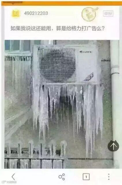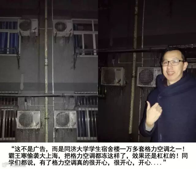 无独有偶,同样受寒流影响严重的上海网友也晒出了坚挺的格力空调。