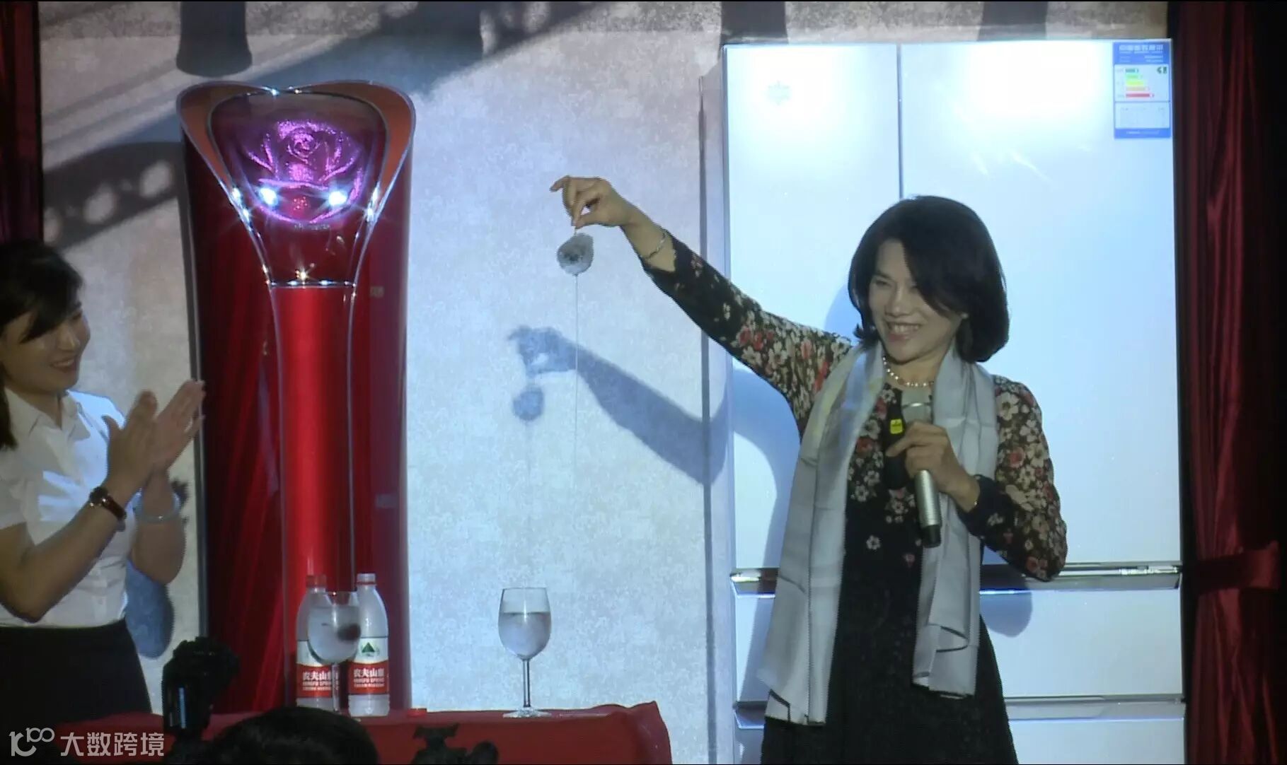 9月22日,在格力新品发布会现场,嘉宾和媒体朋友共同见证了神奇的一幕——从晶弘冰箱“瞬冷冻”室中拿出的矿泉水是液态的,而当董姐拿了一颗樱桃放入水中,樱桃却瞬间结冰了。
