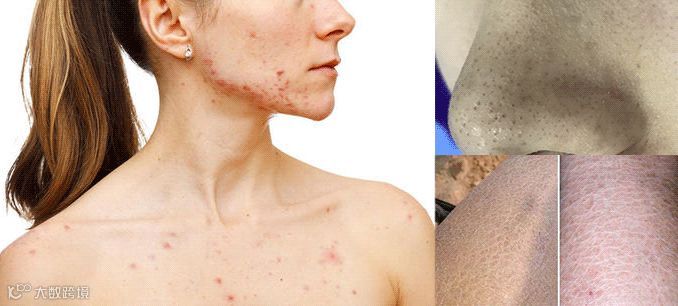 不止是身上痒,脸上、身上还总是出油、长痘、黑头,红肿一片,前胸后背都是痘,全身干燥起皮……