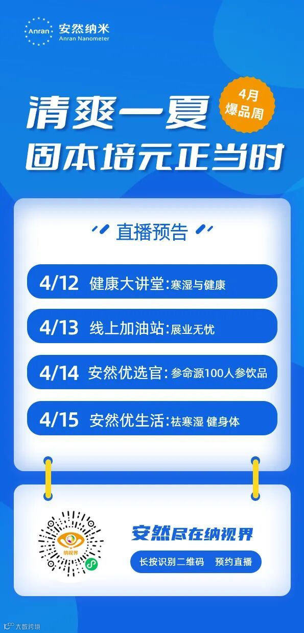 特别时期,在本周(4月12日--4月15日),我们安排了丰富而连续的直播课程,带您“固本培元”,开启健康观念!
