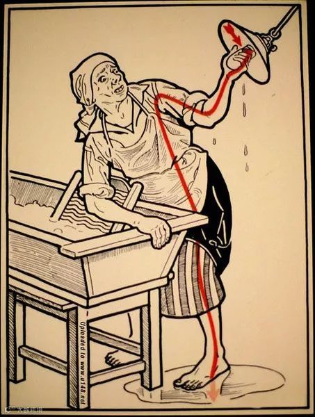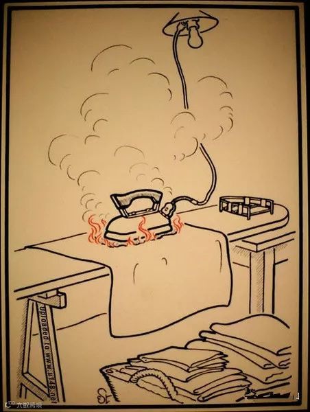 27.危险的主妇系列,因为电线的长年使用导致电路老化 破损,而她的拖把上沾了水,就容易引起触电或着火。