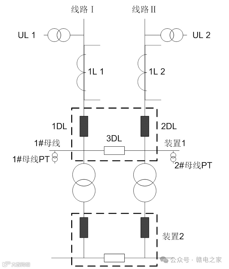 正常运行时,两线路 PT 均有压,两段母线均有压,1DL 和2DL 中的一个开关在合位,另一个在分位,3DL 在合位。