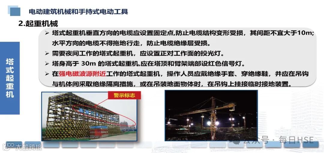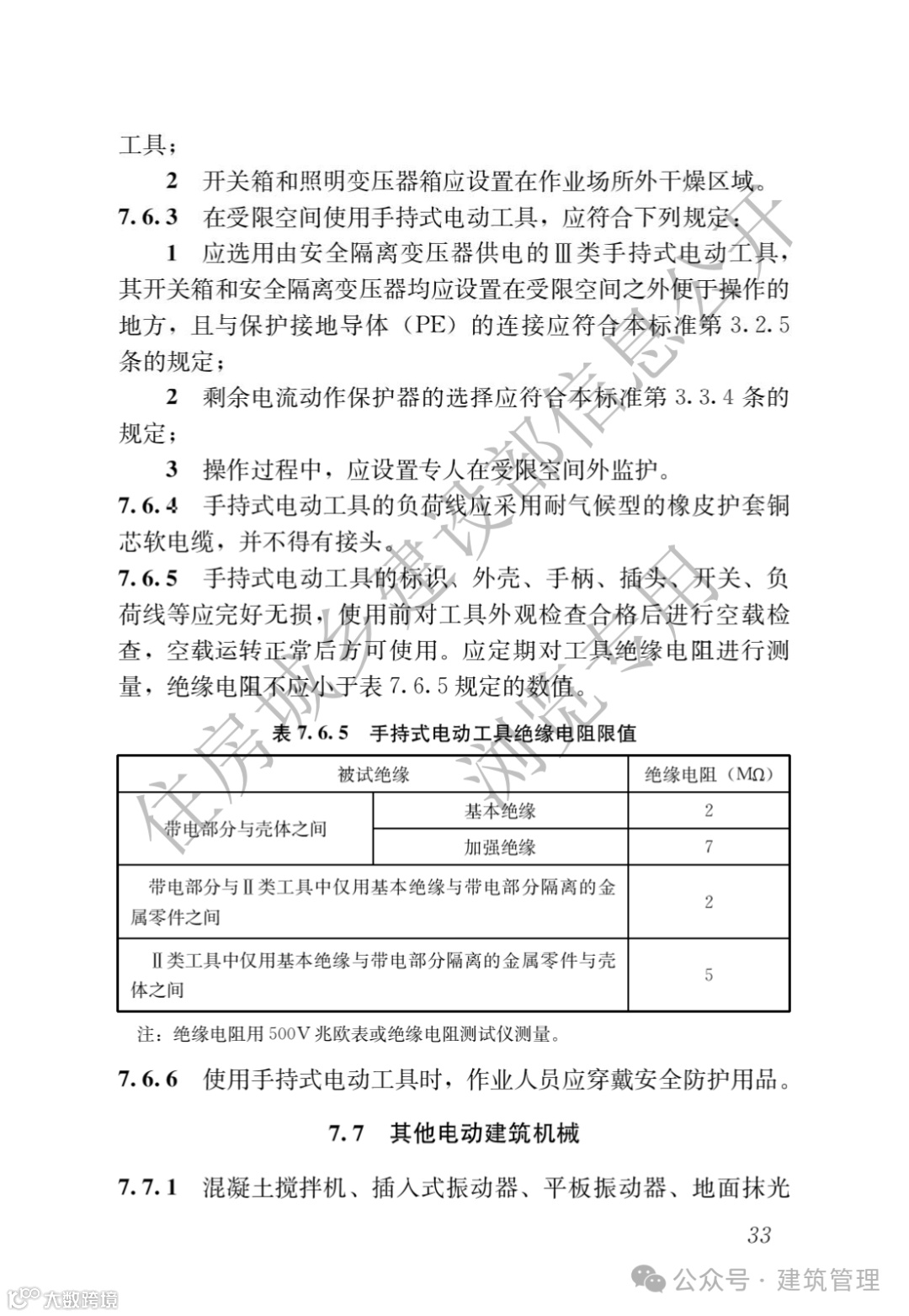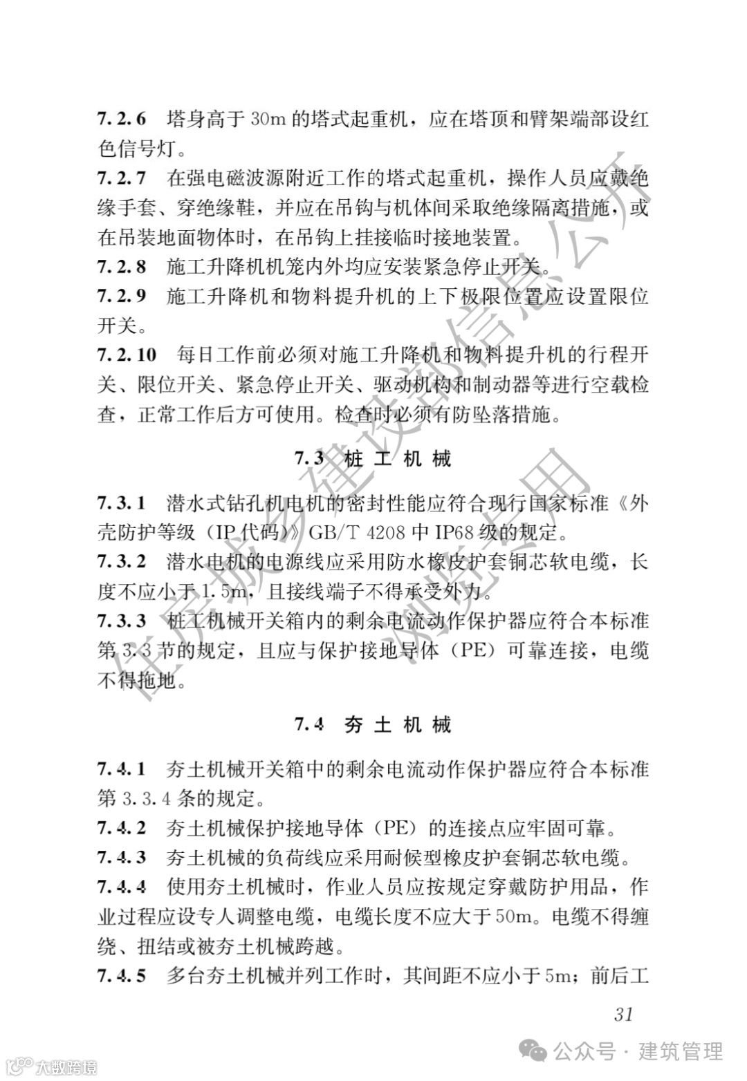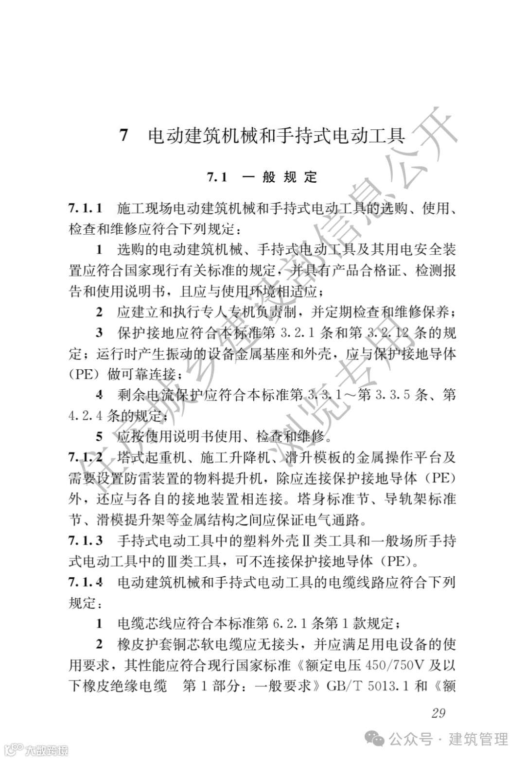 在第7章"电动建筑机械和手持式电动工具"中,新标准特别增加了塔式起重机供电电缆敷设方式及其固定内容。这一变化将为塔吊等大型机械设备的用电安全提供更明确的指导。