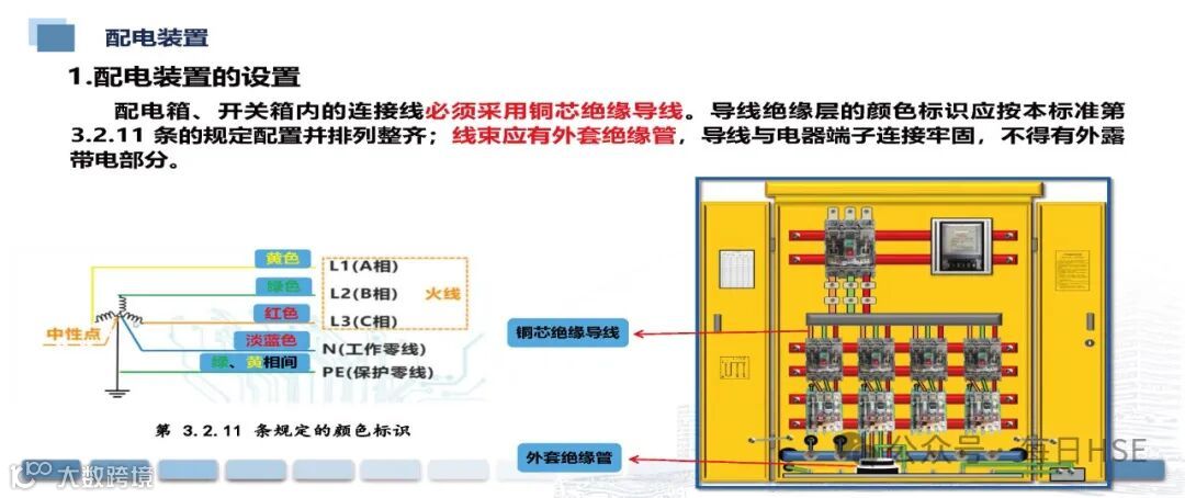 3 中性导体(N)必须是淡蓝色绝缘线,保护接地导体(PE)必须是黄/绿相间绝缘线,严禁混用。