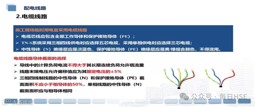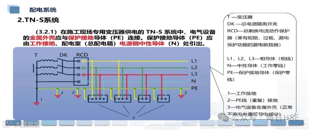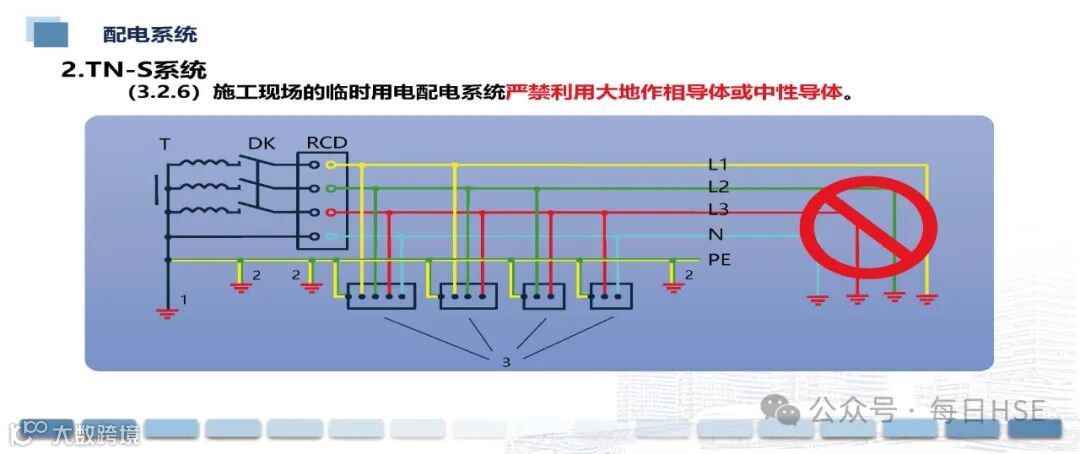 2 TN-S系统采用三相四线供电时必须选用五芯电缆,采用单相供电时必须选用三芯电缆;