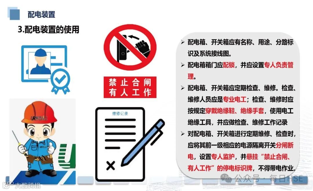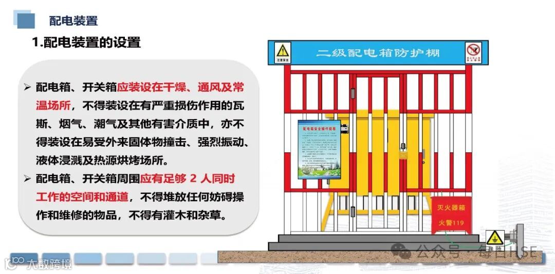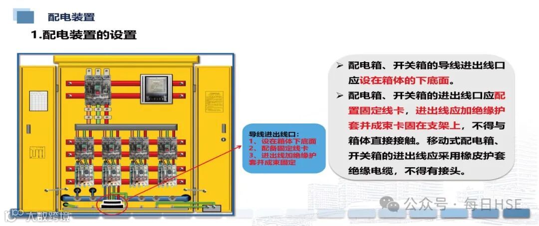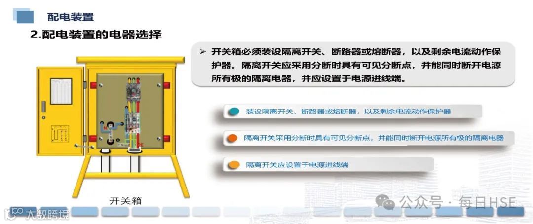 这一规定旨在实现用电设备的精细化管理和控制。每台设备配备专用开关箱,可以更好地监控和保护单个设备,同时便于故障排查和紧急断电操作。
