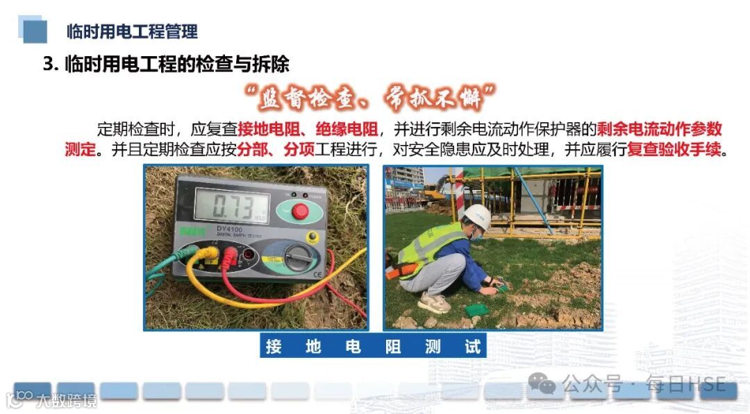 在第3章"临时用电管理"中,新标准对施工现场临时用电组织设计内容进行了补充。其中最值得注意的是增加了剩余电流动作保护器的安装及检查内容。这一变化将有效提高用电安全性,降低触电风险。