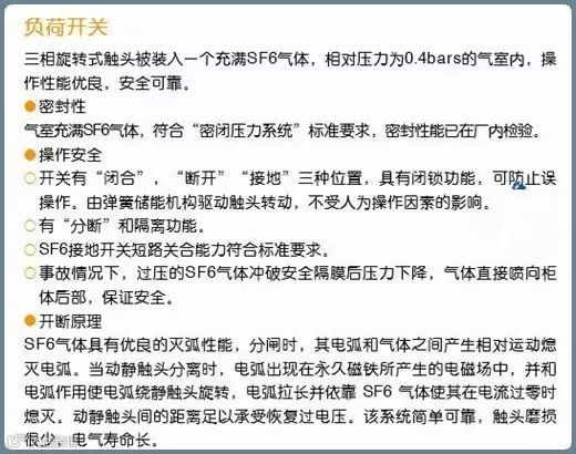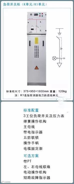 负荷开关柜可以用于环网式供电、中压分界室派接、中压末端变电室供电,各地区供电部门对允许使用负荷开关加熔断器保护的变压器的规格要求不一,象北京一般要求变压器容量不大于 1000KVA,深圳地区可能是 1600KVA。负荷开关柜构造简单,成本较低,体积较小,多数可以靠墙安装,一般只有熔断器保护而无继电保护。负荷开关柜主母线载流量一般小于等于 630A,负荷开关额定开断电流一般小于等于 630A(少数达到 1700A),变压器柜(出线柜) 额定电流(熔断器)一般不大于 125A,高档负荷开关的转移电流可以达到 2800A。部分负荷开关柜可以安装专用真空断路器、SF6 断路器或采用压气等灭弧方式,短路分断能力接近或达到开关柜水平。