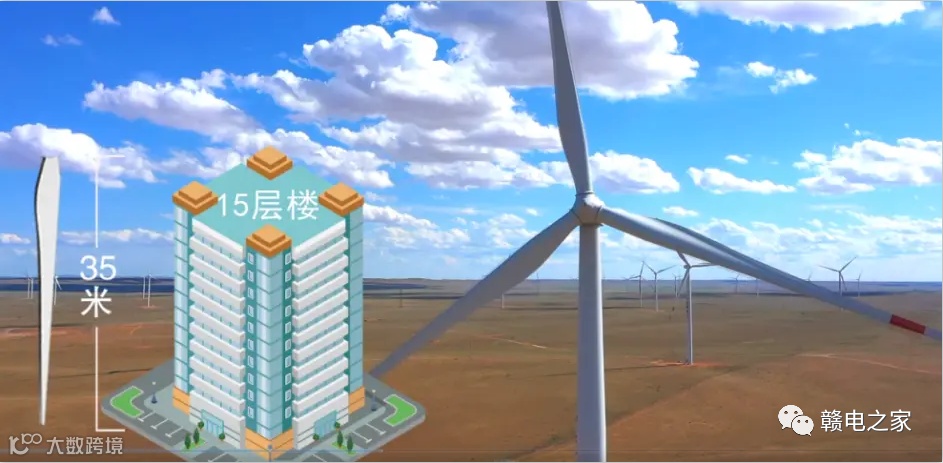 以1.5兆瓦的风机机组为例叶片就有35米长(相当于15层楼高)风机整体高度达到75米,风车每转动一圈扫风面积可达5300平方米相当于13个标准篮球场那么大。