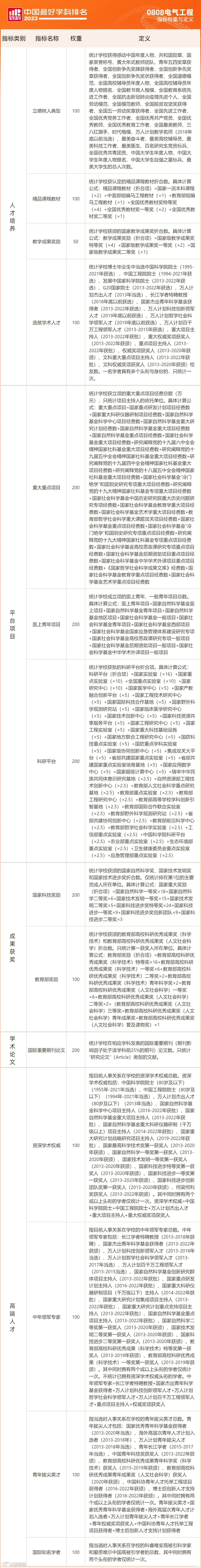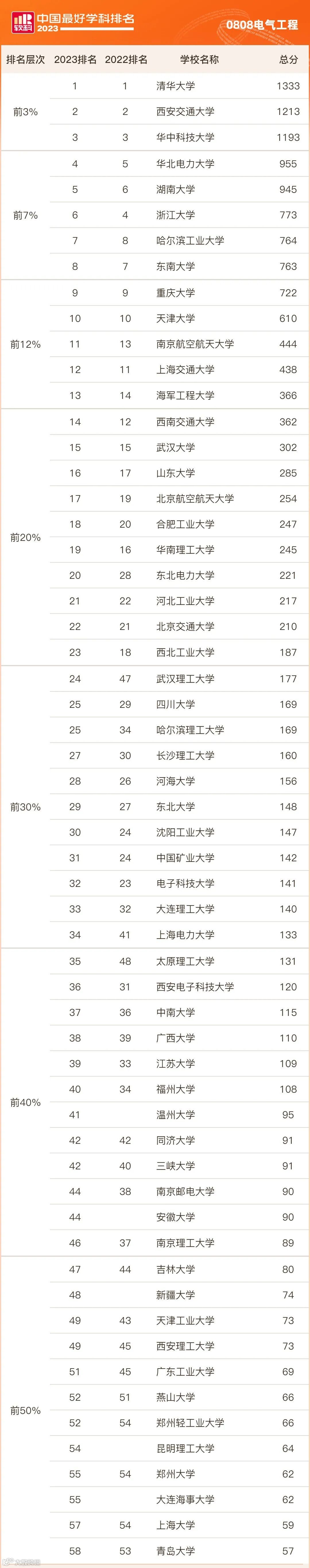电气工程学科完整排名结果如下: