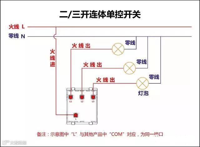 二三开连体单控开关接线图