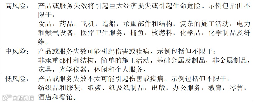 这里的风险类型并非固定不可变的,仅作为示例可供认证机构在确定某审核的风险类型时采用。