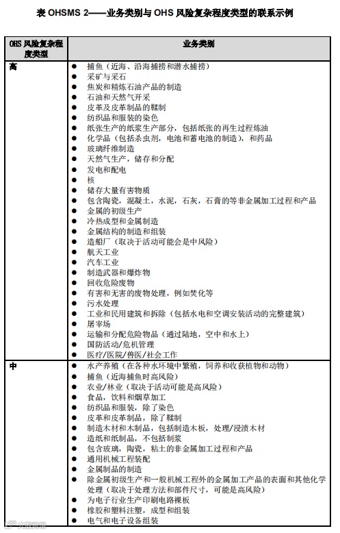 认证机构宜认识到并非所有特定行业的组织都会处于相同的 OHS 风险类型。认证机构宜允许其合同评审程序具有灵活性,以确保在确定 OHS 风险的复杂程度类型时考虑组织的具体活动。