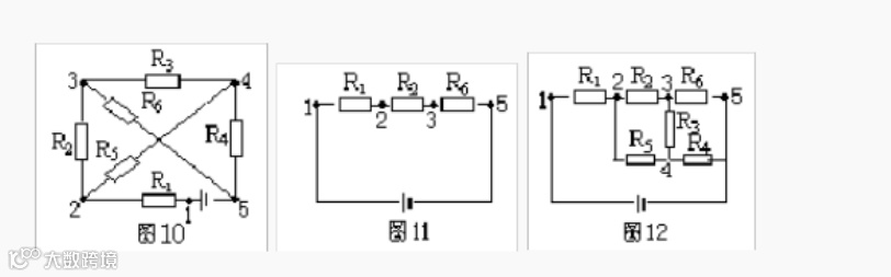 将已知电路中各节点编号,按电势由高到低的顺序依次用1、2、3……数码标出来(接于电源正极的节点电势最高,接于电源负极的节点电势最低,等电势的节点用同一数码,并合并为一点)。然后按电势的高低将各节点重新排布,再将各元件跨接到相对应的两节点之间,即可画出等效电路。