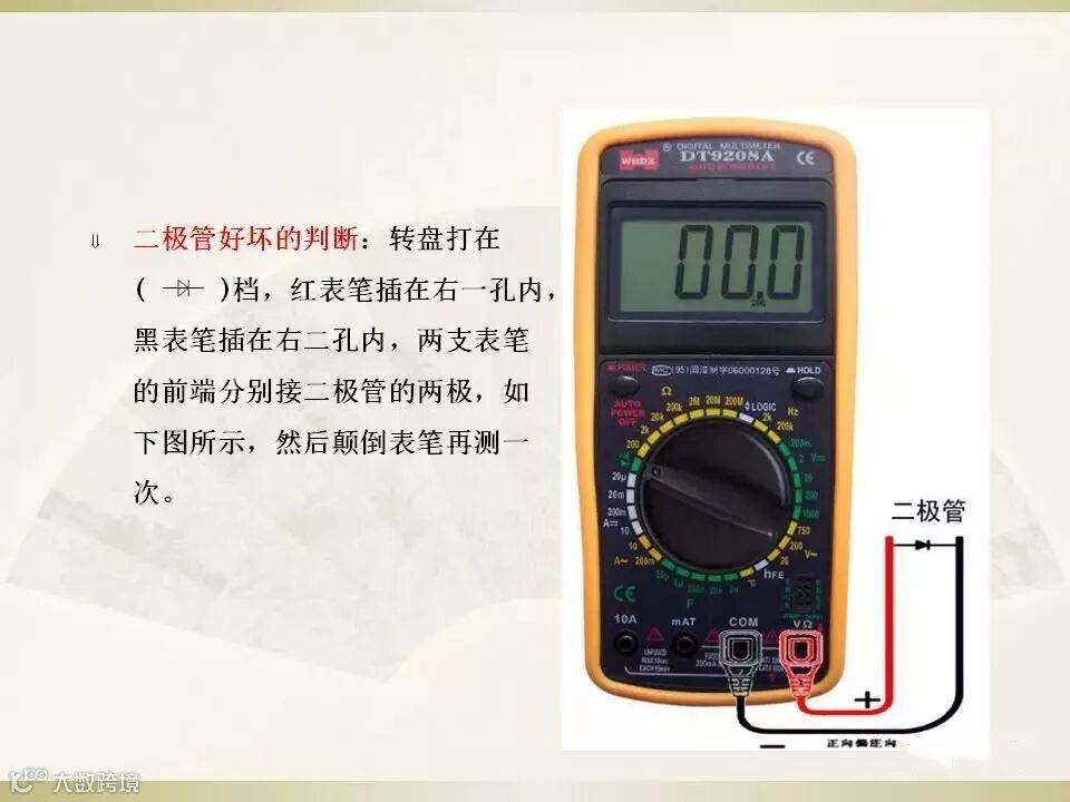 3. 测量电压时,应将数字万用表与被测电路并联。测电流时应与被测电路串联,测直流量时不必考虑正、负极性。