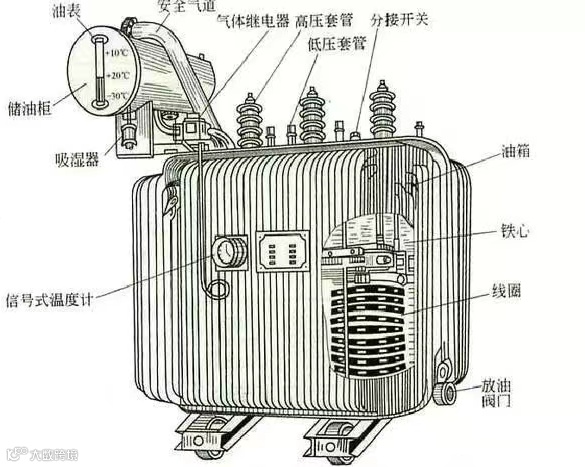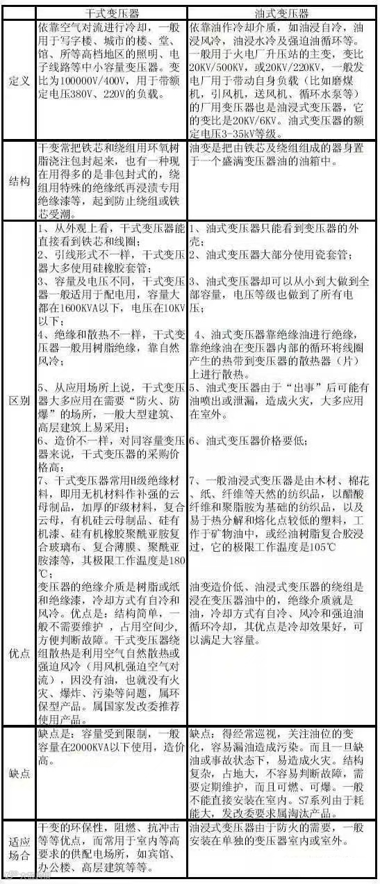 油浸式变压器依靠油作冷却介质、如油浸自冷、油浸风冷、油浸水冷、强迫油循环等。干式变压器依靠空气对流进行自然冷却或增加风机冷却,多用于高层建筑、高速收费站点用电及局部照明、电子线路等小容量变压器。