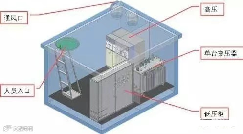 高压/低压预装箱式变电站(所)也称为箱式变电所或组合式变电所(组合箱式变电站)、成套变电站、可移动变电站,产生于二十世纪七十年代,国内已有若干厂家生产。其构造大体上是一个箱式结构,设有高压开关小室、变压器小室及低压配出开关小室三个部分,额定电压为10、35kV,可安装1600kVA及以下变压器。其特点是:占地面积小;工厂化生产、速度快、质量好;施工速度快,仅需现场施工基础部分;外形美观,能与住宅小区环境协调一致;适应性强,具有互换性,便于标准化、系列化;维护工作量小,节约投资。