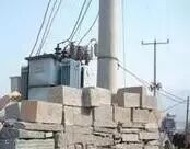 当配电变压器容量在50KVA~315KVA时一般采用双杆式配电变压器台。配电变压器台由一主杆水泥杆和另一根副助杆组成,主杆上装有高压跌落式熔断器及高压引下线,副杆上有二次反引线。双杆配电变压器台经单杆配电变压器坚固。