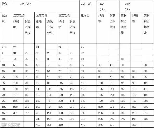 2、本表格载流量为单根电缆容量;