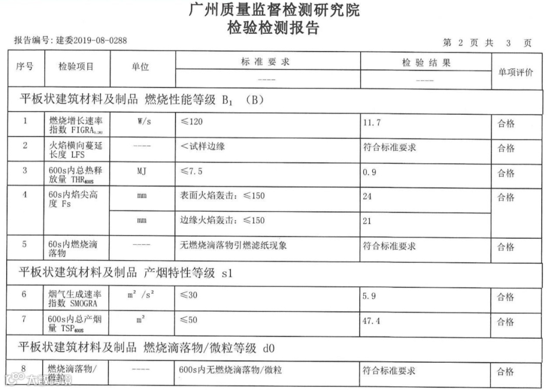 防火桥架检验结果应符合 GB 8624-2012标准[平板状建筑材料B1 (B-s1,d0)级]要求