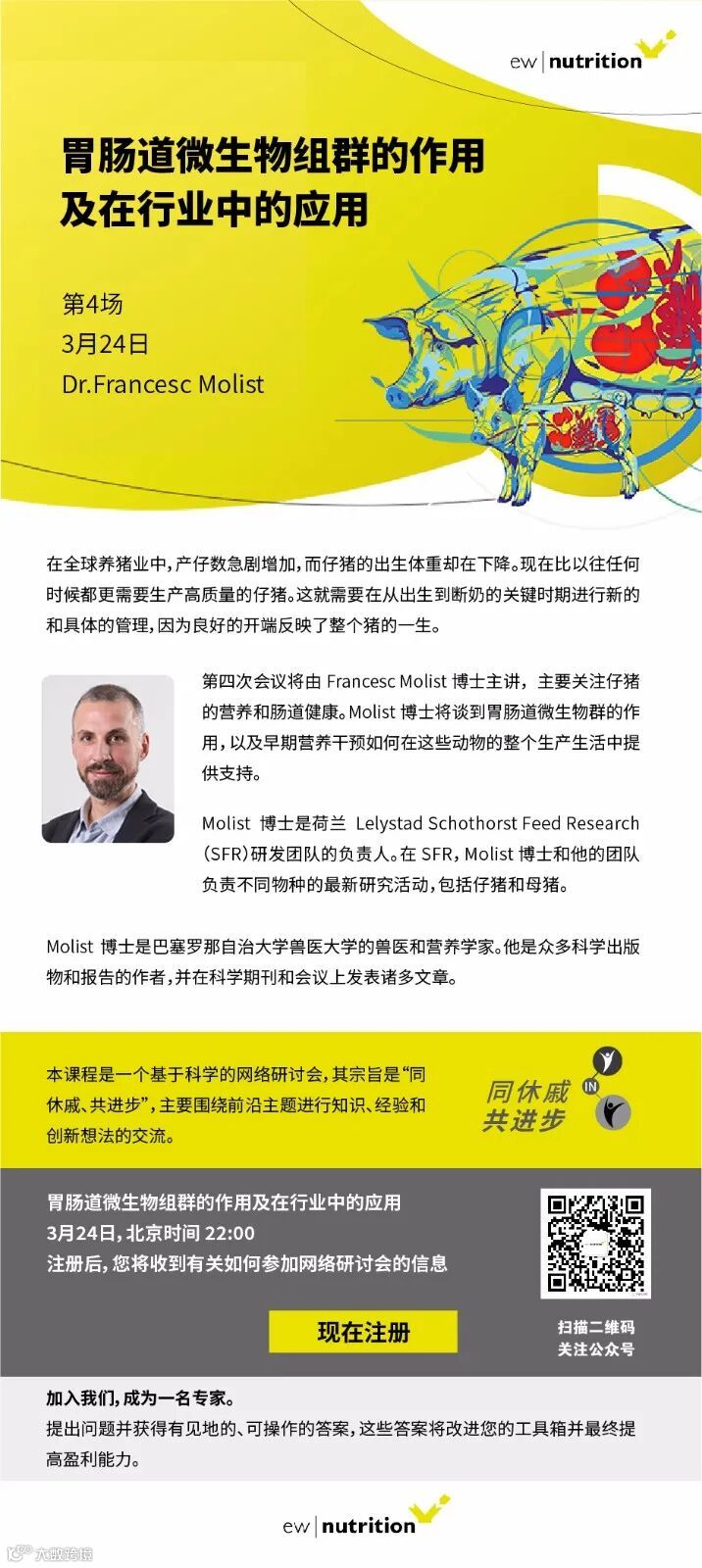 会议前,您可以将您关注的问题发送到webinar@ew-nutrition.com ,您将在3月24日收听到专家的现场答疑。