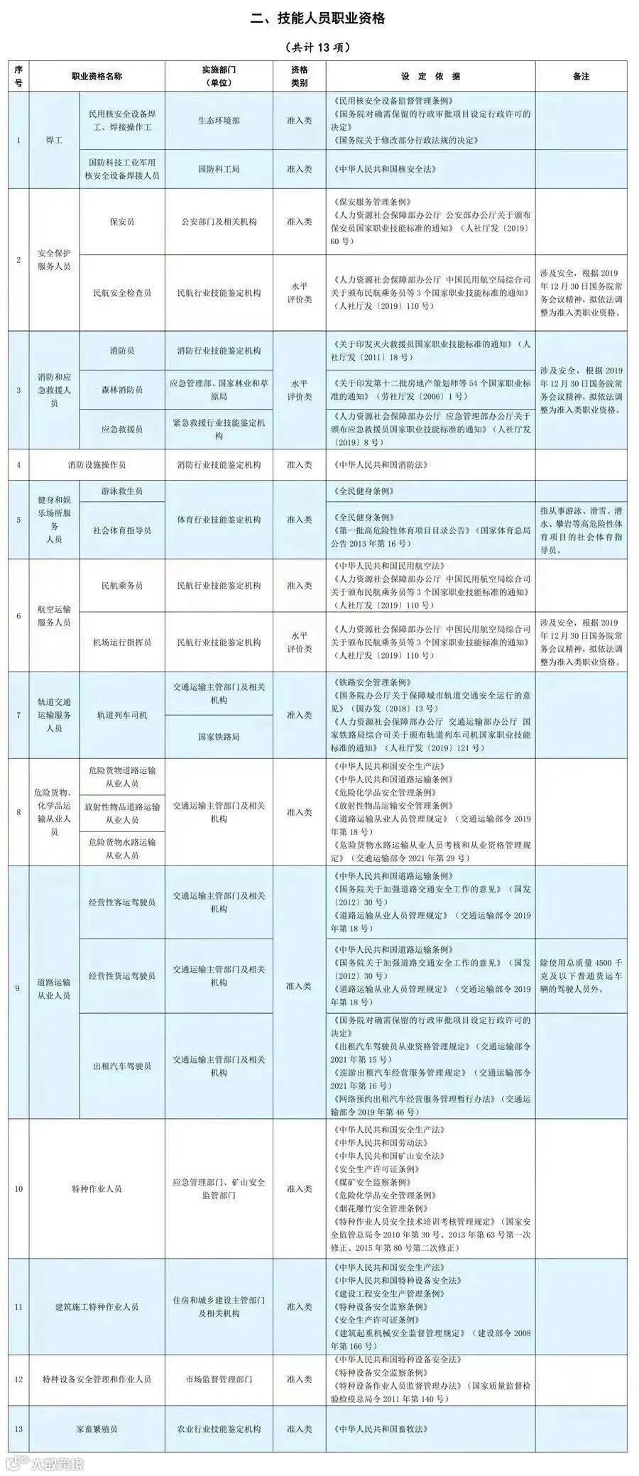 1、职业资格评价按照人社部公布的现行《国家职业资格目录》实施!