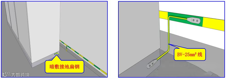 (2)配电室内防火门应与接地线可靠连接,接地线规格应为BVR-1*6m㎡黄绿双色线。