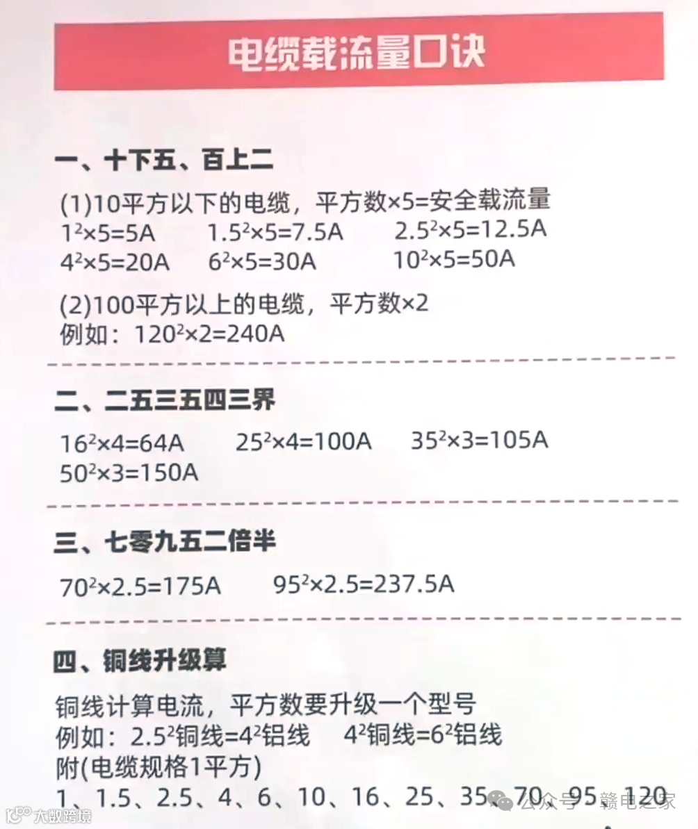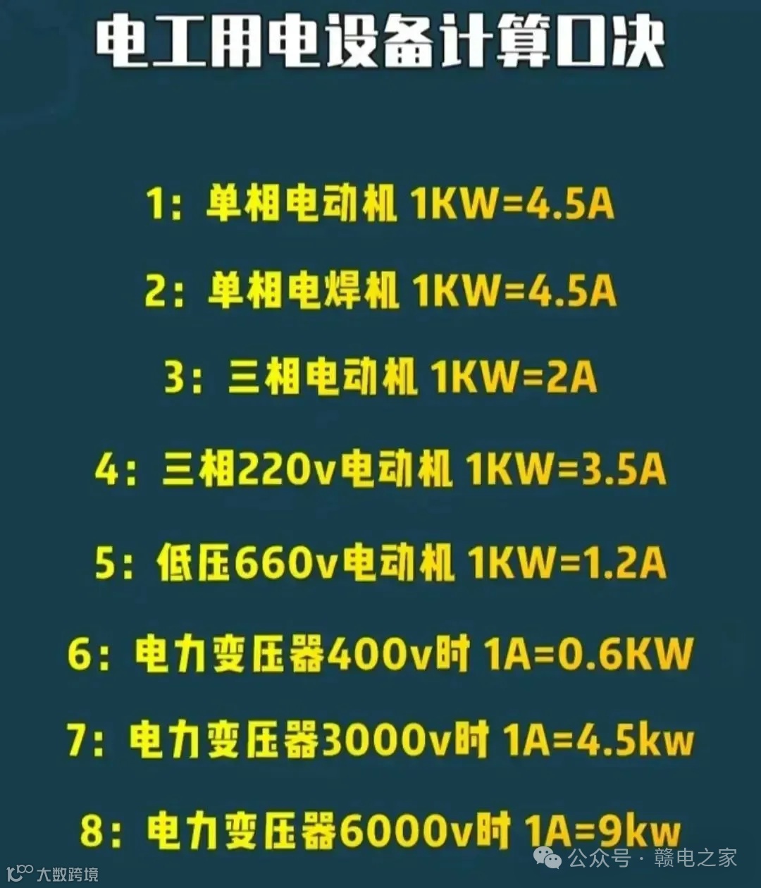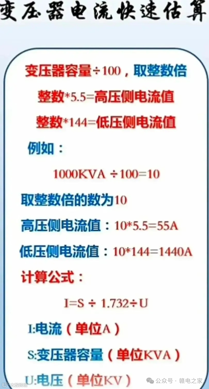 2、电力工作常用的计算公式 3、三相四线零线电流是多少 4、电工需知道的八大公式一 5、KVA与KW的区别 6、电工需要知道的八大公式二 7、电工用电设备计算口诀 8、电工常用的计算公式 9、电工实用电流公式合集一 10、电工实用电流公式合集二 11、电工实用电流公式合集三 12、电工常用计算公式 13、电工需要知道的八大公式 14、电工常用的计算公式 15、用电设备的电流计算公式 16、电缆快速载流量计算口诀 17、电工必备的计算公式一 18、电工必备的计算公式二 19、电工必备的计算公式三 20、电工实用电流公式计算合集 21、电工必备计算公式 22、电工实用最多的公式 23、电压降如何计算 24、常用电流计算公式 25、变压器电流快速估算方法 26、三相设备搭载多大空开电流计算公式 免责声明:本文来自网络,版权归原作者所有,如涉及版权问题,请及时与我们联系删除,谢谢