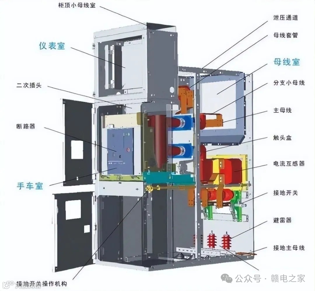 PT柜内有测量PT和计量PT(原来要求是要分开测量PT和计量PT,如没有特殊要求也可以不分开,可以共用)。顶部的小母线可用于向其他高压柜提供电源。同时为其它设备提供电源,满足测量、计量和保护电源的电压要求。