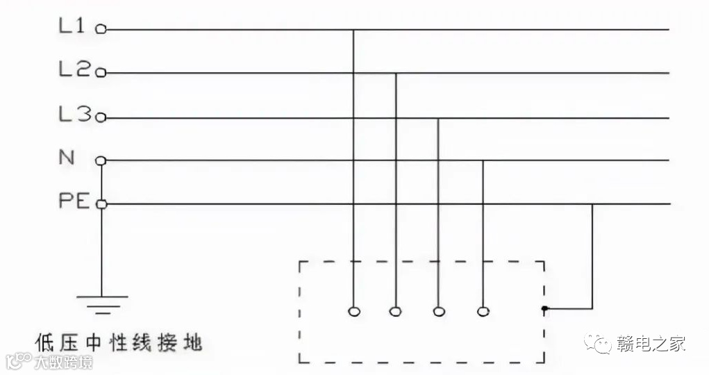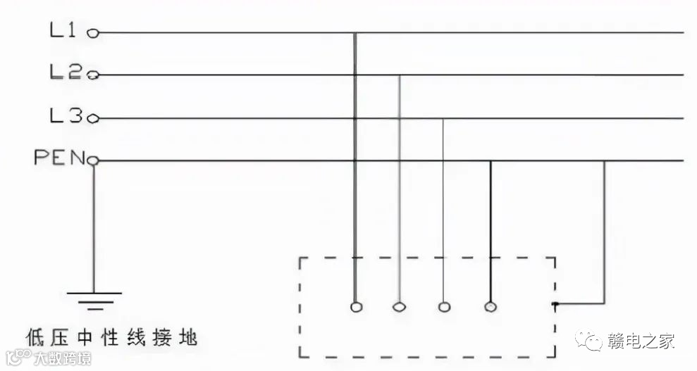 当为三相线路时,除了三根相线外,还可从中性点引出一根导线,即中性点,从而构成三相四线制线路。这种线路中相线之间的电压,称为线电压,相线与零线之间的电压称为相电压。中性点是否接地,亦称为中性点制度。中性点制度可以大致分为两大类,即中性点接地系统与中性点绝缘系统。而按照国际电工委员会(IEC)的规定,将低压配电系统分为IT、TT、TN三种,其中TN系统又分为TN-C、TN-S、TN-C-S三类。