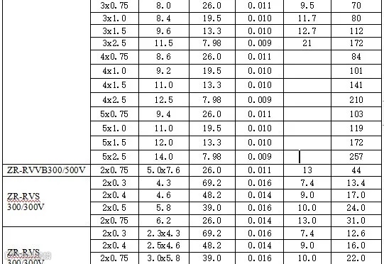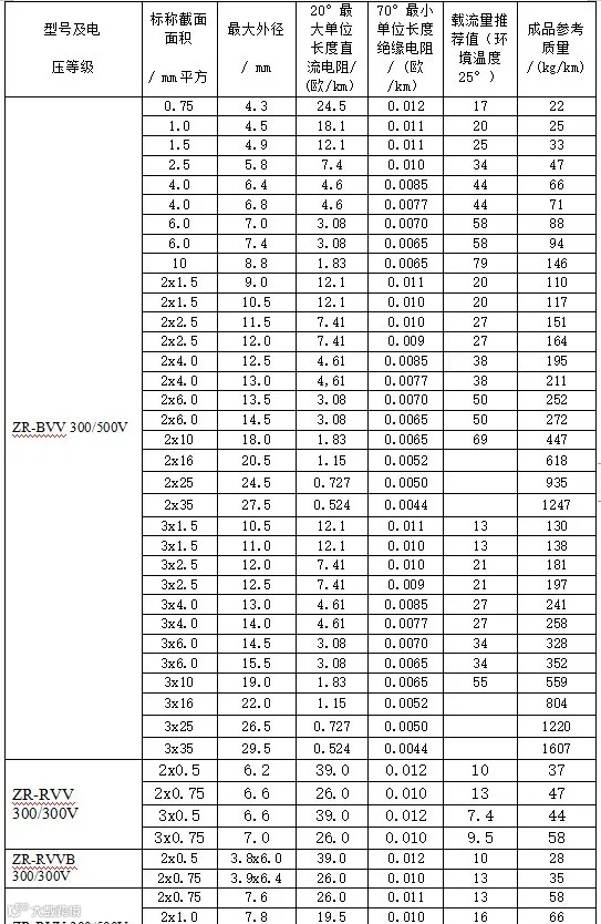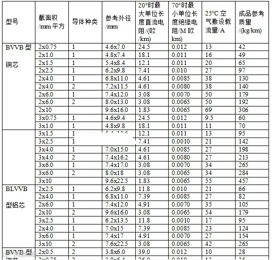 一、BVVB型、BLVVB型、RVVB型电线载流量