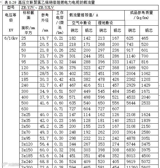 二、交联聚氯乙烯绝缘电力电缆的载流量见表与短路电流见表