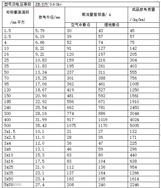 1KV聚氯乙烯绝缘电力电缆的载流量