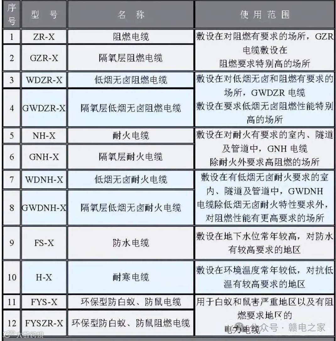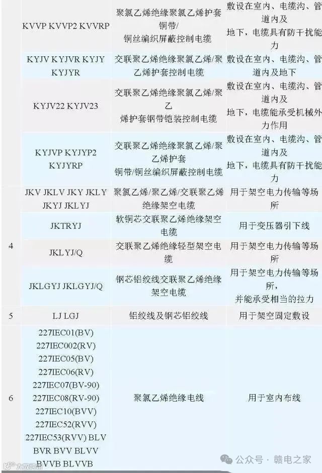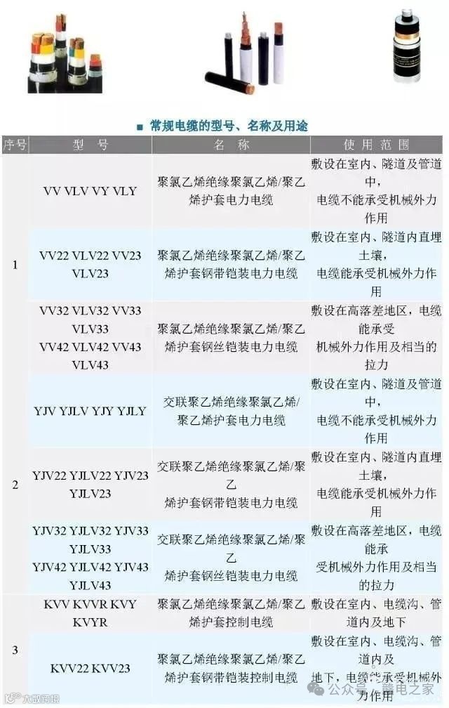 在电缆选型过程中,我们需要考虑多种因素,如电缆的截面积、绝缘材料、工作温度等。不同的电缆类型适用于不同的场合,例如,聚氯乙烯绝缘电缆通常用于室内照明和插座的接线,而橡套电缆则适用于移动电器设备的连接。因此,我们需要对各种电缆的特性进行深入了解,以便根据实际需求选择合适的电缆类型。今天就给大家分享超全的电缆选型参考表,以便大家需要时查询。