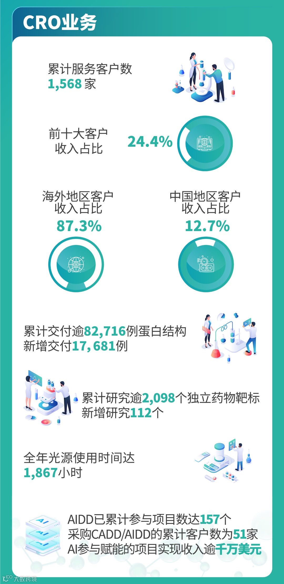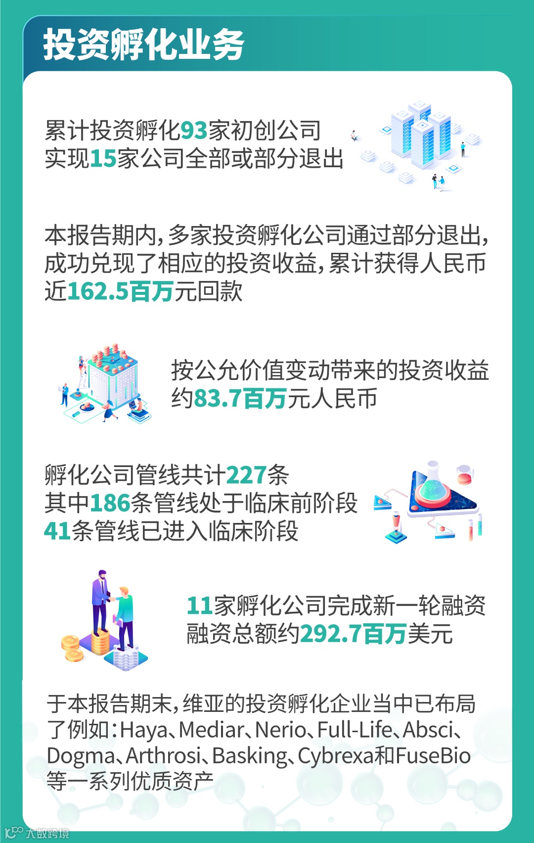 截至2024年12月31日,维亚生物已累计为全球2,465家生物科技及制药客户提供药物研发及生产服务,共计投资孵化93家生物医药初创企业。未来,公司将持续增强技术壁垒、提升研发与生产服务能力,为全球更多的初创新药公司及中大型药企提供优质的多元化服务,助益全球病患。