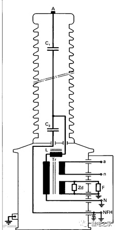 (2)电容分压式电压互感器的冲击绝缘强度比电磁式电压互感器高。