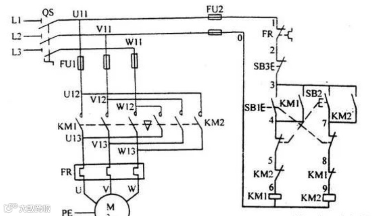 4.三相电机正反转接线;最难点就是三相电机的正反转电路,但是吃透交流接触器的自锁、互锁、按钮互锁以及三相电机正反转换相反转原理就能够轻松通过考验;