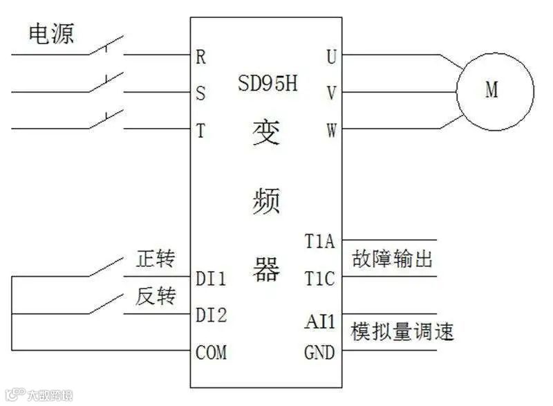 首先我们来看一下变频器的接线端子,虽然说品牌较多,接线方式也有不同,但是大部分的变频器的接线端子也都差不太多。一般分为正反转的开关量输入,用来控制电机多的启动正反转。反馈端子,用来反馈电机的运行状态,包括运行的频率,转速,故障状态等等。速度给定控制,有些变频器是用电位器,有的直接使用按键,都为不通。