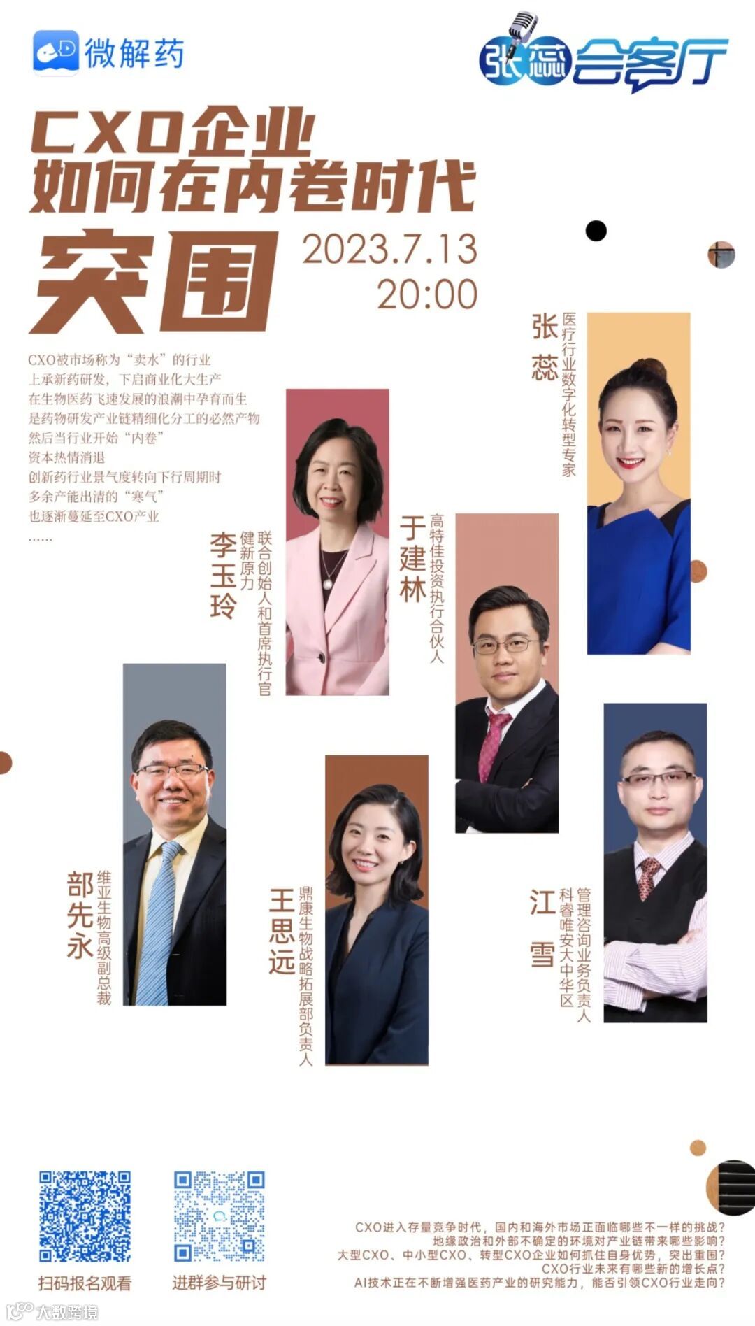 带着这个问题,7月13日20:00《张蕊会客厅》本期直播由医疗行业数字化转型专家张蕊老师主持,特邀维亚生物部先永及健新原力李玉玲、高特佳于建林、科睿唯安江雪、鼎康生物王思远几位业内专家,共同探讨CXO行业未来面临的挑战和发展机遇,欢迎各位同仁积极参与交流,敬请期待!