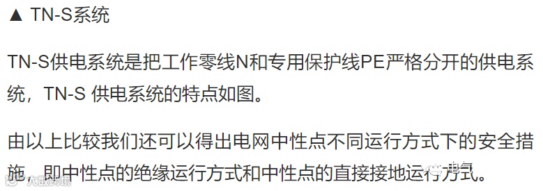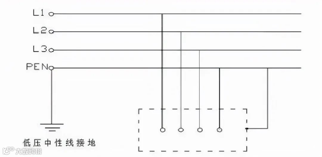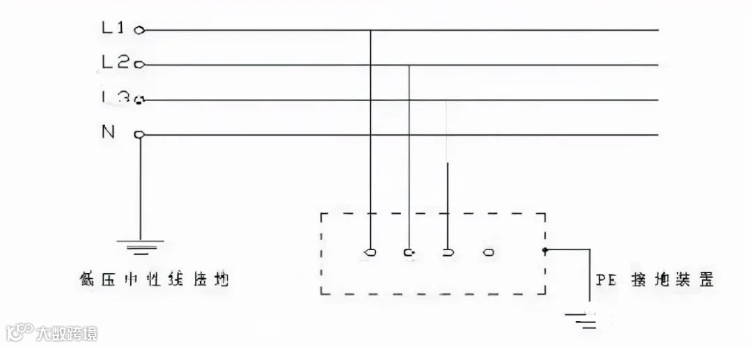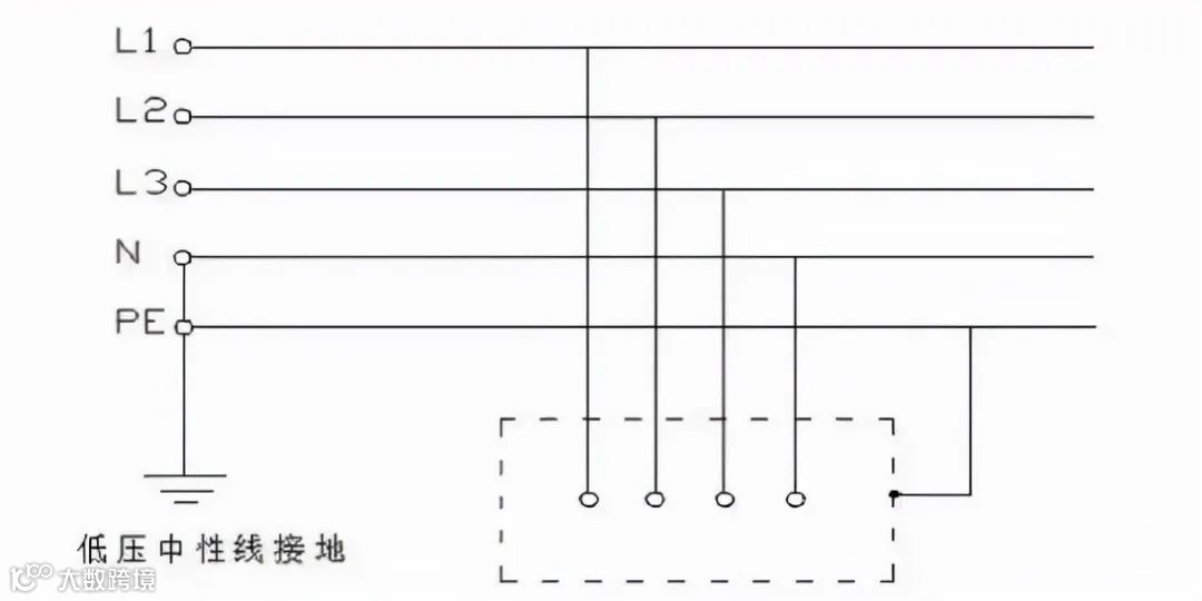 当为三相线路时,除了三根相线外,还可从中性点引出一根导线,即中性点,从而构成三相四线制线路。这种线路中相线之间的电压,称为线电压,相线与零线之间的电压称为相电压。中性点是否接地,亦称为中性点制度。中性点制度可以大致分为两大类,即中性点接地系统与中性点绝缘系统。而按照国际电工委员会(IEC)的规定,将低压配电系统分为IT、TT、TN三种,其中TN系统又分为TN-C、TN-S、TN-C-S三类。