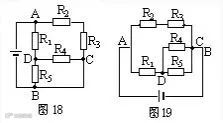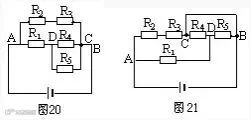 方案二:选取 A—R1—D—R4—C—B 为一条独立支路,再分别安排 R2、R3 和 R5,的位置,构成等效电路图 20。