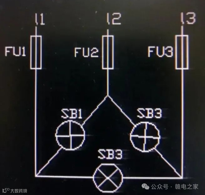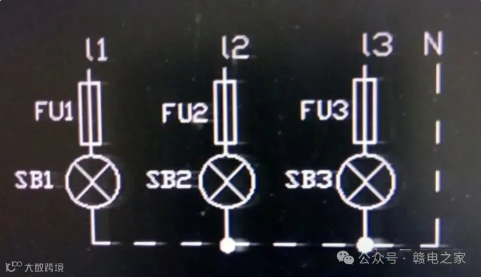 (1)三相电源分别与零线组成独立的指示灯回路,每相的接法和单相电源信号指示灯一样,指示灯的额定电压为220V,如下图,某相电源缺相时对应的指示灯将不亮;