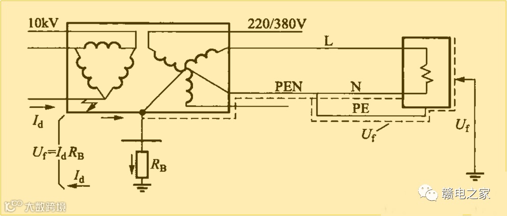 ◆ 当高压10kV侧发生单相接地故障时,小电阻接地的10kV系统将会产生较大的故障电流(这个值会有几百安倍),故障电流将经过箱变的共用接地极流回10kV系统的电源侧,从而在接地极上产生了上千伏的故障电压。
