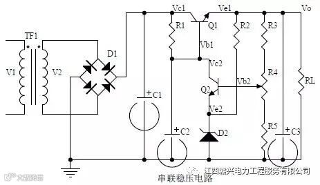电源滤波是在负载RL两端并联一只较大容量的电容器。由于电容两端电压不能突变,因而负载两端的电压也不会突变,使输出电压得以平滑,达到滤波的目的。