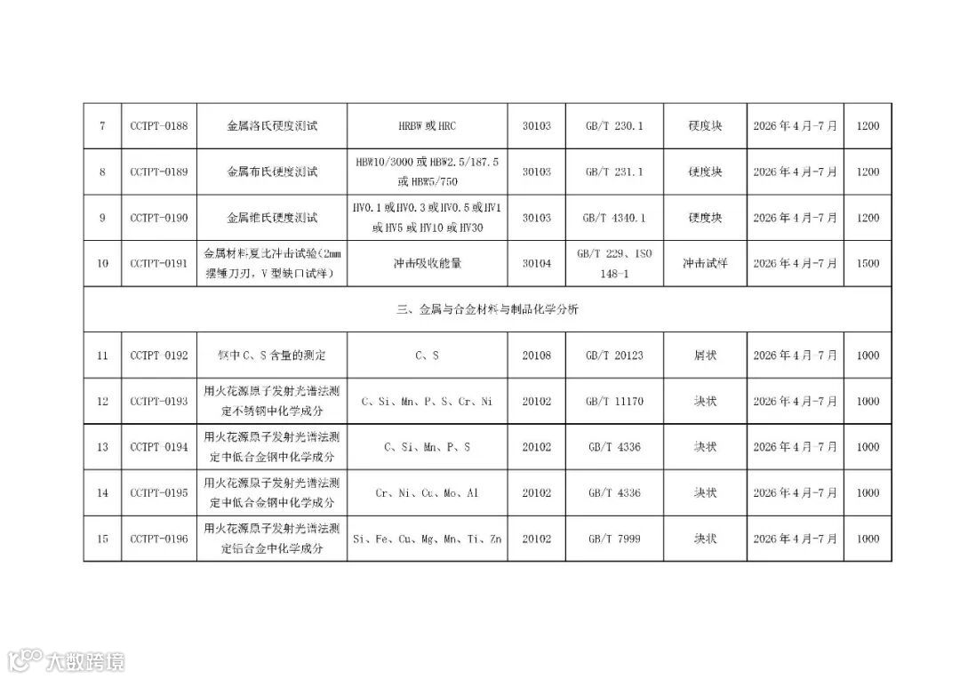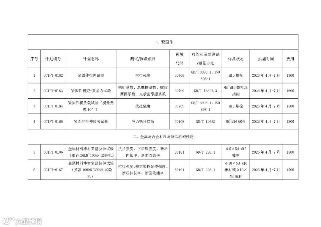 2026年国检检测能力验证计划已发布,欢迎广大实验室和检验检测机构报名参加。同时,本机构长期开展认可领域内的测量审核项目,欢迎来电咨询。