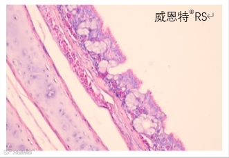 对照组和威恩特®RS组相比,病理得分高,呼吸道上皮和杯状细胞损坏、呼吸道上皮细胞炎性细胞浸润情况更严重。